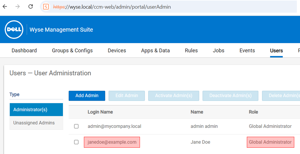 Still, calling the importADUsers route alone was not sufficient. Users imported this way are assigned to the Unassigned Admins group and do not receive effective administrative privileges.